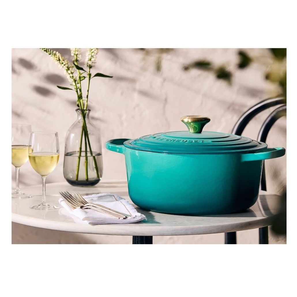 Assorbe il calore e lo restituisce gradatamente in maniera uniforme per una cottura completa e regolare conservando il gusto e tutte le qualità nutrizionali degli alimenti. Anche a fiamma spenta, la ghisa continua a restituire calore mantenendo le pietanze calde a lungo senza energia supplementare. Inoltre, grazie alla smaltatura interna ed esterna, un utensile in ghisa Le Creuset conserva la propria brillantezza per anni.