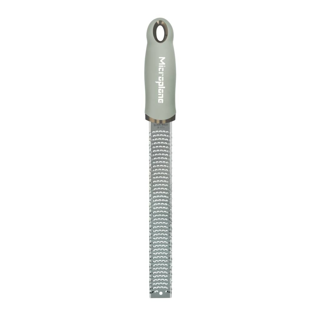La grattugia Zester di Microplane manico verde salvia, ideale per parmigiano, zenzero e scorza di agrumi. In vendita in negozio a Torino oppure online.