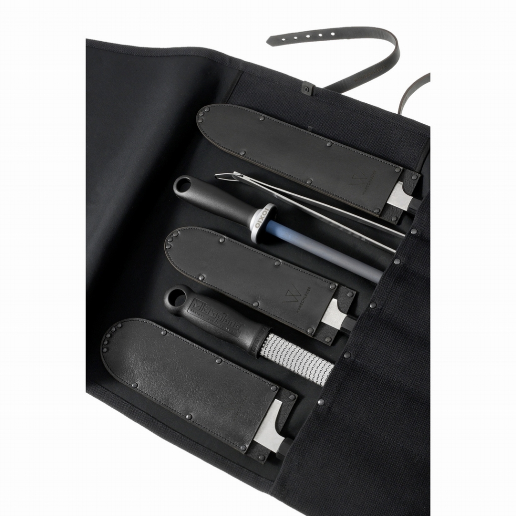 Rotolo porta coltelli sviluppato dal team Wunschleder per la conservazione elegante e sicura dei coltelli.